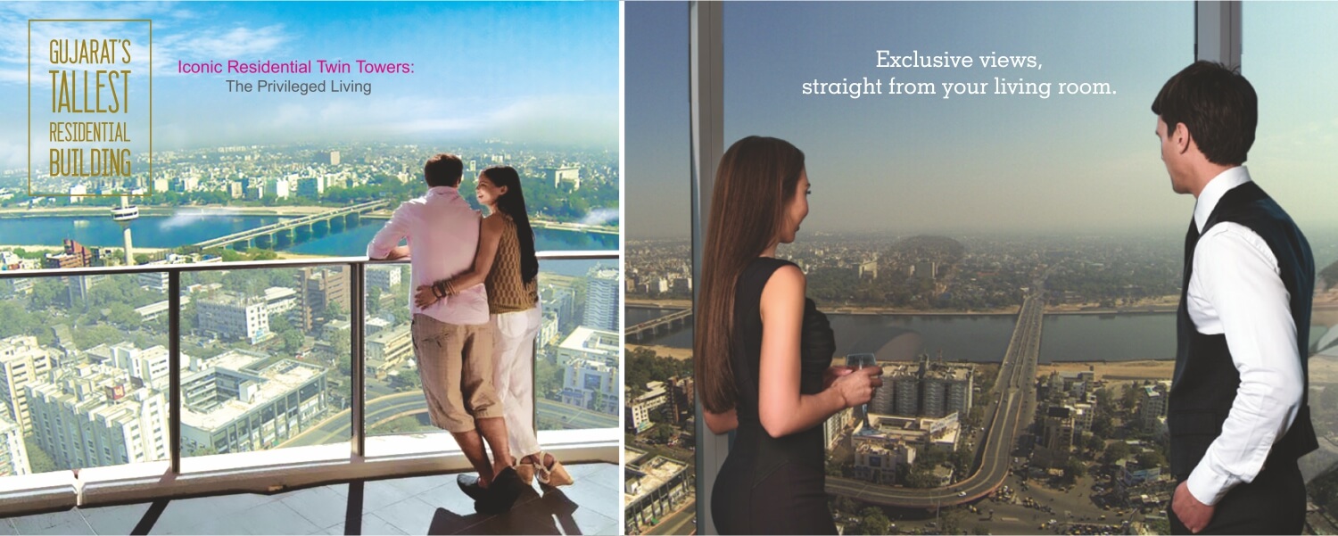 The Point of Differentiation for this Tallest Residential was its location. The residential overlooked the world renowned ‘Sabarmati Riverfront’ and beyond. The USP became the visual representation to generate curiosity among the defined audience.