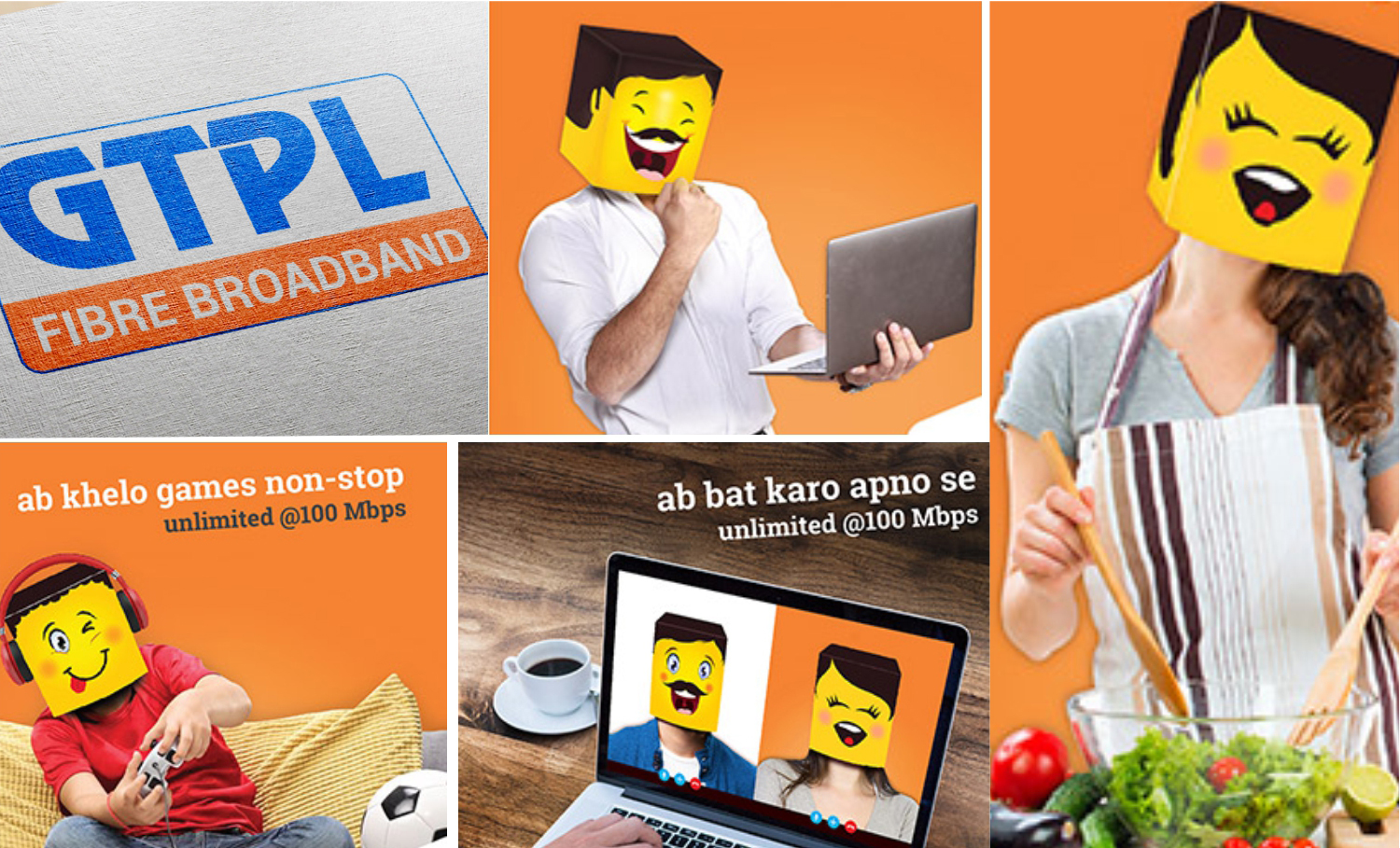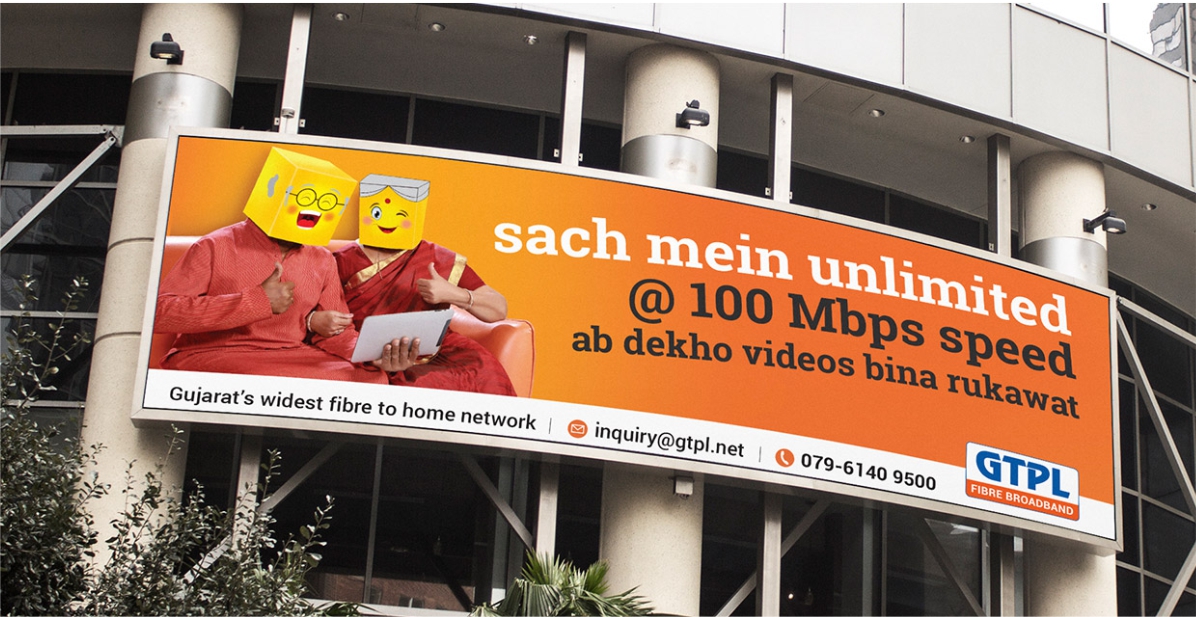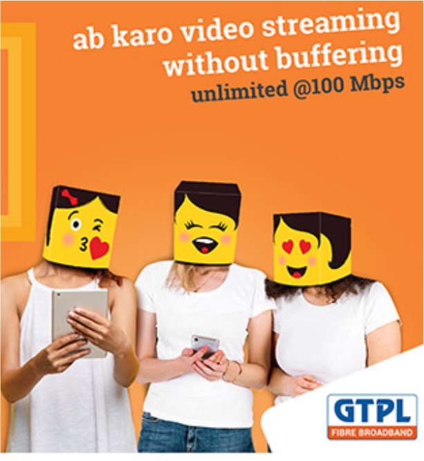 The creative idea of “Emoticons” was derived to address the pain-point of existing GTPL users. The idea behind the design was to communicate, through its visual simulation, the feeling of exhilaration and delight which the Young audience would experience while using the new fibre optic plan. The campaign tagline: Sach mein Unlimited - subtly addressed the pain-point.